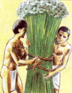 Collita del papir a Egipte. Aquest material fou un element important pel transport dels primers missatges.